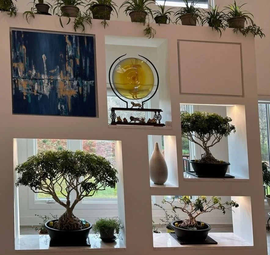 We began with a thorough discussion about the space where the display wall would reside. The goal was to create a layout that would not only highlight the artwork but also allow the bonsai trees to thrive. This meant considering lighting, spacing, and accessibility for maintenance.